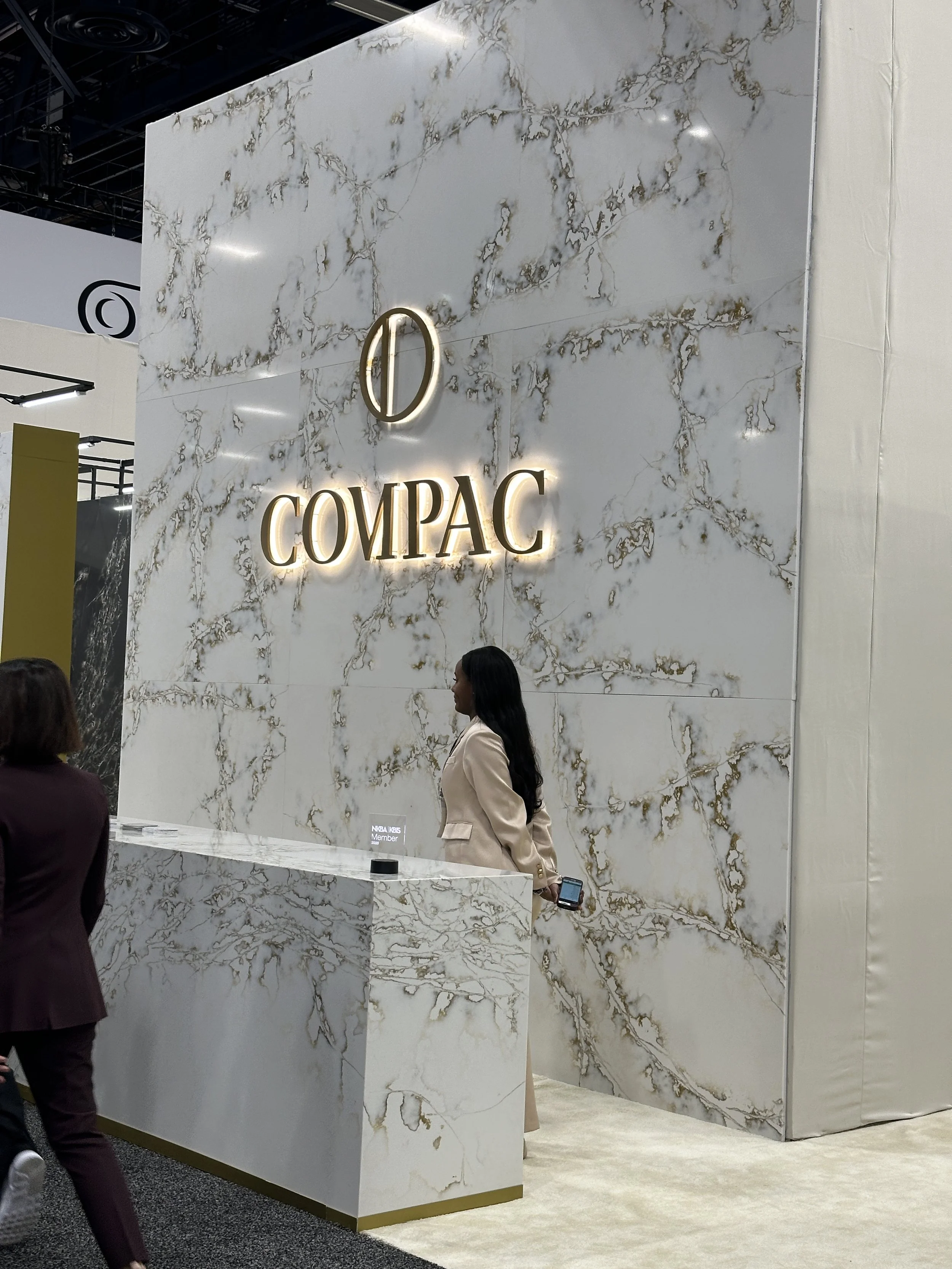 We toured the compacsurfaces booth at KBIS that was very impressive! They are a company in Spain founded in 1975 that manufactures high quality quartz whose patterns and colors set them apart from other brands.