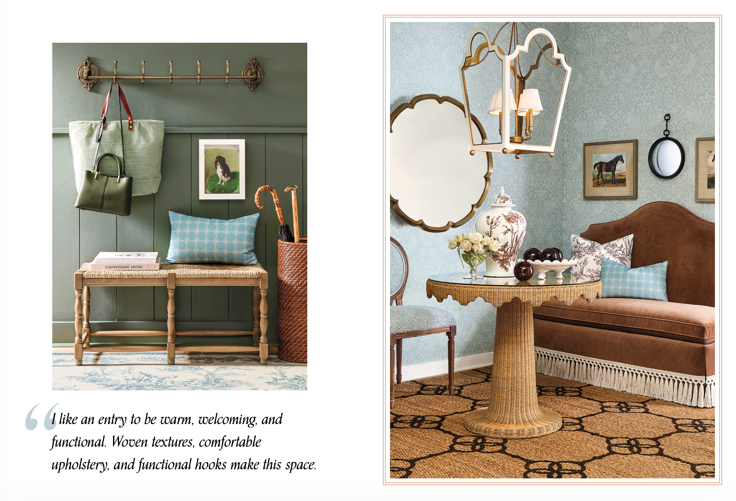It’s not about themed decor, it’s more about leather, wood, brass and clean classic pieces. Think timeless and layered, not themed.